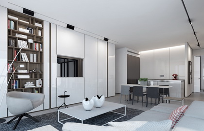 一、顶面一般要用浅色:浅色使人感觉轻,深色使人感觉重。通常房间的处理大多是自上而下,由浅到深,如房间的顶棚及墙面采用白色及浅色,墙裙使用白色及浅色,踢脚线使用深色,就会给人一种上轻下重的稳定感,相反,上深下浅会给人一种头重脚轻的压抑感。